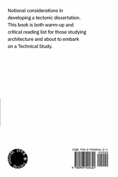 'Notional considerations in developing a tectonic dissertation. This text is a warm-up and a critical reading list for those studying architecture and about to engage with a Technical Study.' 'Technical Studies...' explores ideas of the tectonic-in contrast to the stereotomic-with calls to key texts in the field, incorporating brief reference project contributions from a select range of art and architecture practitioners.