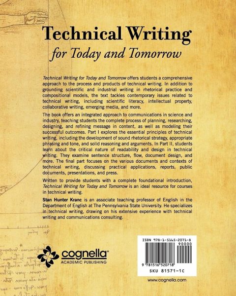 Technical Writing for Today and Tomorrow offers students a comprehensive approach to the process and products of technical writing. In addition to grounding scientific and industrial writing in rhetorical practice and compositional models, the text tackles contemporary issues related to technical writing, including scientific literacy, intellectual property, collaborative writing, emerging media, and more. The book offers an integrated approach to communications in science and industry, teaching students the complete process of planning, researching, designing, and refining message in content, as well as modeling their successful outcomes. Part I explores the essential principles of technical writing, including the development of sound rhetorical strategy, appropriate phrasing and tone, and solid reasoning and arguments. In Part II, students learn about the critical nature of readability and design in technical writing. They examine sentence structure, flow, document design, and more. The final part focuses on the various documents and contexts of technical writing, discussing practical applications, reports, public documents, presentations, and press. Written to provide students with a complete foundational introduction, Technical Writing for Today and Tomorrow is an ideal resource for courses in technical writing. Stan Hunter Kranc is an associate teaching professor of English in the Department of English at The Pennsylvania State University. He specializes in technical writing, drawing on his extensive experience with technical writing and communications consulting.