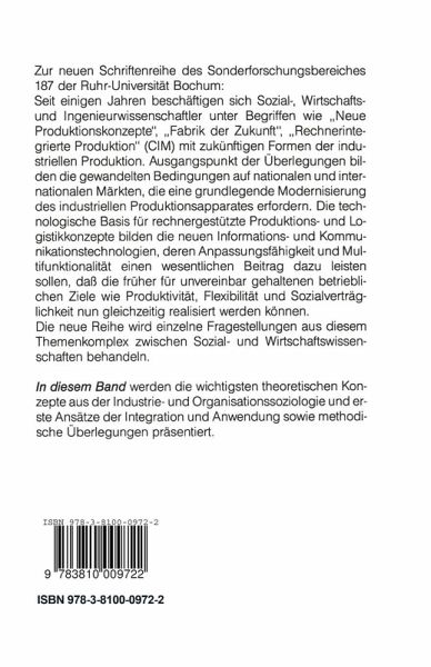 und Kontext.- Industrielle Wettbewerbsfähigkeit und flexible Produktionssysteme: Zukunftschancen der Fabrik.- Technik, Arbeit und Betrieb in Industriesoziologie und Organisationsforschung. Probleme und Perspektiven einer wechselseitigen Rezeption.- Die Struktur kontingenztheoretischer Ansätze.- Entwicklungsmuster industrieller Arbeit.- Mikropolitik - Zur Bedeutung sozialer Praxis in wirtschaftlichen Organisationen.- Der produktions- und arbeitspolitische Umbruch als sozialwissenschaftlicher Forschungsgegenstand und gewerkschaftliches Handlungsdilemma.- Organisation als Verkörperung von Herrschaft - Sozialtheoretische und makrosoziologische Aspekte der Organisationssoziologie.- Umbrüche im Werkzeugmaschinenbau - eine arbeitspolitische Betrachtung.- Die Crux mit den kleinen Zahlen - zum Generalisierungsproblem bei qualitativer Sozialforschung.- Fallstudien in der Industriesoziologie - Zur Kritik der vorherrschenden Methode sozialwissenschaftlicher Technikforschung.- Anhang: Der Sonderforschungsbereich 187.- Autorenverzeichnis.