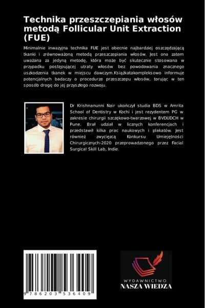 Minimalnie inwazyjna technika FUE jest obecnie najbardziej oszcz¿dzaj¿c¿ tkanki i zrównowäon¿ metod¿ przeszczepiania w¿osów. Jest ona zatem uwäana za jedyn¿ metod¿, która mo¿e by¿ skutecznie stosowana w przypadku post¿puj¿cej utraty w¿osów bez powodowania znacznego uszkodzenia tkanek w miejscu dawczym.Ksi¿¿katakompleksowo informuje potencjalnych badaczy o procedurze przeszczepu w¿osów, toruj¿c w ten sposób drog¿ do jej przysz¿ego rozwoju.