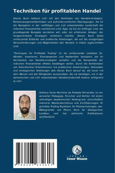 Dieses Buch befasst sich mit den Feinheiten von Handelsstrategien, Risikomanagementtechniken und aufsichtsrechtlichen Überlegungen, die für die Navigation in der vielfältigen und sich entwickelnden Landschaft der indischen Finanzmärkte unerlässlich sind. Egal, ob Sie ein Anfänger sind, der grundlegende Konzepte verstehen will, oder ein erfahrener Anleger, der fortgeschrittene Strategien verfeinern möchte, dieses Buch bietet umfassende Einblicke und praktische Anleitungen, die auf die einzigartigen Herausforderungen und Möglichkeiten des Handels in Indien zugeschnitten sind."Techniques for Profitable Trading" ist als umfassender Leitfaden für Händler, Investoren, Finanzexperten und Akademiker konzipiert, die ihr Verständnis von Handelsstrategien vertiefen und die Komplexität der indischen Finanzmärkte effektiv bewältigen wollen. Durch die Kombination von theoretischen Erkenntnissen mit praktischen Anwendungen, Fallstudien und strategischen Anleitungen zielt dieses Buch darauf ab, die Leser mit dem Wissen und den Fähigkeiten auszustatten, die sie benötigen, um in der dynamischen und sich entwickelnden Handelslandschaft Indiens erfolgreich zu sein.