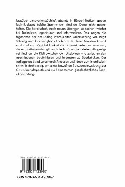 Tagsüber "innovationssüchtig", abends in Bürgerinitiativen gegen Technikfolgen: Solche Spannungen sind auf Dauer nicht auszuschalten. Die Bereitschaft, nach neuen Lösungen zu suchen, wächst bei Technikern, Ingenieuren und Informatikern. Das zeigen die Ergebnisse der am Dialog interessierten Untersuchung von Birgit Volmerg und Eva Senghaas-Knobloch. In dieser Situation kommt es darauf an, möglichst konkret die Schwierigkeiten zu benennen, die es zu überwinden gilt und die Ansätze darzustellen, die geeignet sind, um die Kluft zwischen den Disziplinen und zwischen den verschiedenen Bedürfnissen und Interessen zu überbrücken. Dieser Band versammelt Analysen und Ideen zum interdisziplinären Technikdialog, zur sozial bewußten Softwareentwicklung, zur Gewerkschaftspolitik und zur kompetenten gesellschaftlichen Technikbewertung.