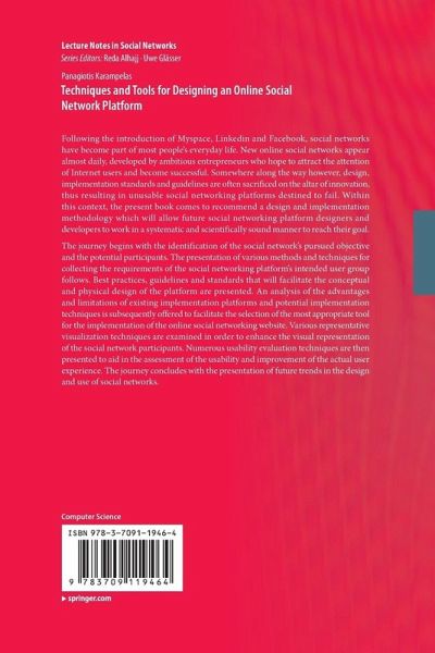 Following the introduction of Myspace, Linkedin and Facebook, social networks have become part of people's everyday life. New online social networks appear almost daily developed to attract the attention of Internet users. However, design and implementation standards and guidelines are often sacrificed for innovation resulting in unusable social networking platforms destined to be doomed. Within this context, the present book recommends a design and implementation methodology which will allow future social networking platform designers and developers to work in a scientifically systematic and sound manner to reach their goal.