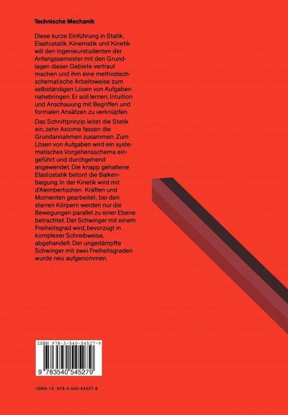 Dieses Buch wendet sich an Ingenieurstudenten der Anfangssemester. Es will den Leser mit den Grundlagen von Statik, Elastostatik, Kinematik und Kinetik vertraut machen und ihm die Fihigkeit zum selbstandigen Losen von Aufgaben vermitteln. Es will darlegen, wie sich Intuition und Anschauung mit Hilfe von Begriffen klar fassen und durch formale Ansatze ausdriicken lassen. Die Erfahrung der Autoren mit Studenten der Elektrotechnik zeigt, daB viele Anfanger den Weg von der Problemstellung zur Losung verlieren, wenn man ihn nicht systematisch anlegt. Deshalb fassen wir die Grundannahmen in zehn Axio men zusammen und losen Aufgaben (ab Abschnitt 1.10) nach einem einheitli chen Schema, das von der Statik ausgehend auch die Kinetik erfaBt, wozu dort konsequent mit d' Alemenbertschen (Tragheits-) KraIten und Momenten gear beitet wird. Diese Systematik unterstutzend werden die Beispiele und auch eine Reihe von allgemeinen Aussagen nach dem Muster Gegeben/Gesucht/Losung behandelt. Trotz derkurzen Darstellung wiederholen wir wichtige Dinge gele gentlich, urn sie zu betonen. Die Forderung nach Anschaulichkeit und der knappe Raum gebieten, viele Aus sagen am charakteristischen Beispiel herauszuarbeiten und zu besprechenj der Leser erkennt unmittelbar die allgemeine Bedeutung. Auf graphische Methoden wird weitgehend verzichtetj dreidimensionale (raumliche) Aufgabenstellungen werden nur vereinzelt betrachtet. Beiden Verfassern hat E. Moncks Einfiihrungsvorlesung Technische Mechanik so gut gefallen, daB sie in Teilen deren Gliederung folgen. Aus V. M. Starzinskijs Theoretischer Mechanik kam die Anregung, die Grundannahmen der Statik als Axiome herauszustellen.