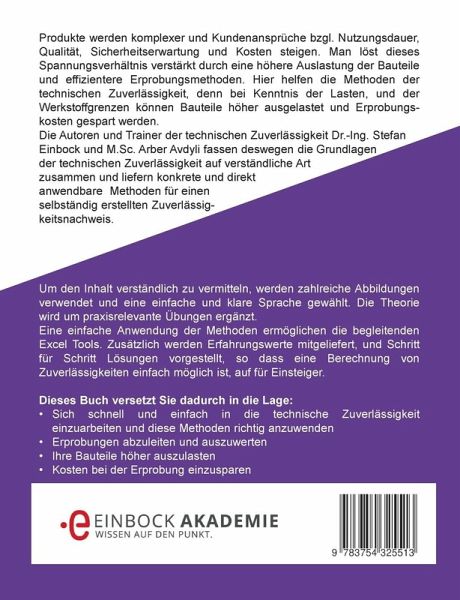 Produkte werden komplexer und Kundenansprüche bzgl. Nutzungsdauer, Qualität, Sicherheitserwartung und Kosten steigen. Man löst dieses Spannungsverhältnis verstärkt durch eine höhere Auslastung der Bauteile und effizientere Erprobungsmethoden. Hier helfen die Methoden der technischen Zuverlässigkeit, denn bei Kenntnis der Lasten, und der Werkstoffgrenzen können Bauteile höher ausgelastet und Erprobungskosten gespart werden. Die Autoren und Trainer der technischen Zuverlässigkeit Dr.-Ing. Stefan Einbock und M.Sc. Arber Avdyli fassen deswegen die Grundlagender technischen Zuverlässigkeit auf verständliche Art zusammen und liefern konkrete und direkt anwendbare Methoden für einen selbständig erstellten Zuverlässigkeitsnachweis.Um den Inhalt verständlich zu vermitteln, werden zahlreiche Abbildungen verwendet und eine einfache und klare Sprache gewählt. Die Theorie wird um praxisrelevante Übungen ergänzt. Eine einfache Anwendung der Methoden ermöglichen die begleitenden Excel Tools. Zusätzlich werden Erfahrungswerte mitgeliefert, und Schritt für Schritt Lösungen vorgestellt, so dass eine Berechnung von Zuverlässigkeiten einfach möglich ist, auf für Einsteiger. Dieses Buch versetzt Sie dadurch in die Lage: - Sich schnell und einfach in die technische Zuverlässigkeit einzuarbeiten und diese Methoden richtig anzuwenden- Erprobungen abzuleiten und auszuwerten- Ihre Bauteile höher auszulasten- Kosten bei der Erprobung einzusparen