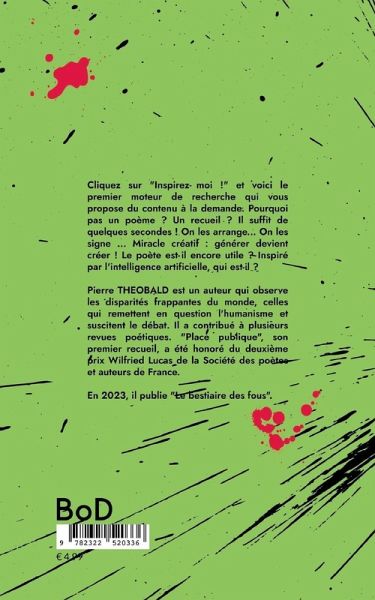 Cliquez sur "Inspirez-moi !" et voici le premier moteur de recherche qui vous propose du contenu à la demande. La formule est aussi barbare qu'efficace ! Pourquoi pas un poème ? Un recueil ? En quelques secondes, ils s'affichent ! On les arrange... On les signe ... Tel est le choc de création que les intelligences artificielles ont déclenché. Générer devient créer... Le poète est-il encore utile ? Inspiré par ces intelligences supplétives, qui est-il ?