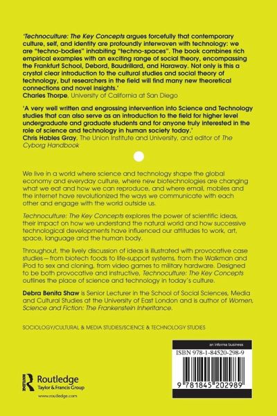 We live in a world where science and technology shape the global economy and everyday culture, where new biotechnologies are changing what we eat and how we can reproduce, and where email, mobiles and the internet have revolutionised the ways we communicate with each other and engage with the world outside us.Technoculture: The Key Concepts explores the power of scientific ideas, their impact on how we understand the natural world and how successive technological developments have influenced our attitudes to work, art, space, language and the human body. Throughout, the lively discussion of ideas is illustrated with provocative case studies - from biotech foods to life-support systems, from the Walkman and iPod to sex and cloning, from video games to military hardware. Designed to be both provocative and instructive, Technoculture: The Key Concepts outlines the place of science and technology in today's culture.