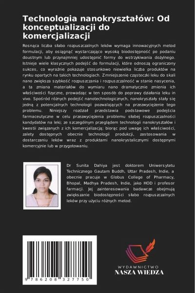 Rosn¿ca liczba s¿abo rozpuszczalnych leków wymaga innowacyjnych metod formulacji, aby osi¿gn¿¿ wystarczaj¿co wysok¿ biodost¿pno¿¿ po podaniu doustnym lub przynajmniej udost¿pni¿ formy do wstrzykiwania do¿ylnego. Istnieje wiele klasycznych podej¿¿ do formulacji, które odnosz¿ ograniczony sukces, co wyränie pokazuje stosunkowo niewielka liczba produktów na rynku opartych na takich technologiach. Zmniejszenie cz¿steczki leku do skali nano zwi¿ksza szybko¿¿ rozpuszczania i rozpuszczalno¿¿ w stanie nasycenia, a ta zmiana materiäów do wymiaru nano dramatycznie zmienia ich w¿äciwo¿ci fizyczne, prowadz¿c w ten sposób do poprawy dziäania leku in vivo. Spo¿ród ró¿nych podej¿¿ nanotechnologicznych, nanokrysztäy stäy si¿ jedn¿ z potencjalnych technologii pozwalaj¿cych na przezwyci¿¿enie tego problemu. Niniejszy rozdziä przedstawia podstawowe podej¿cia farmaceutyczne w celu przezwyci¿¿enia problemu s¿abej rozpuszczalno¿ci kandydatów na leki; ze szczególnym przegl¿dem technologii nanokrysztäów i kwestii zwi¿zanych z ich komercjalizacj¿; bior¿c pod uwag¿ ich w¿äciwo¿ci, zalety dost¿pnych obecnie technologii produkcji, zastosowania w dostarczaniu leków wraz z produktami nanokrystalicznymi dost¿pnymi komercyjnie lub w przygotowaniu.
