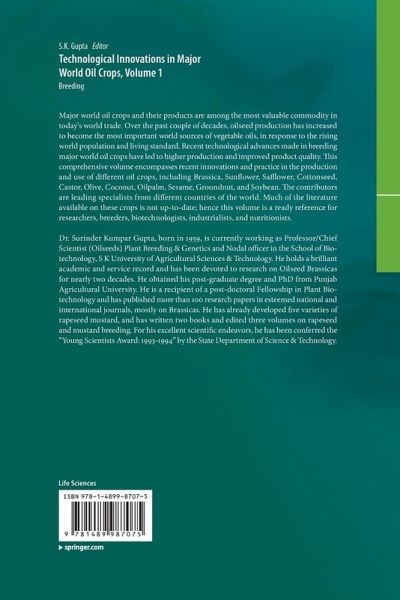 "This book, edited by Dr S. K. Gupta, covers important topics by expert scientists on breeding major oil crops. ... The book presents detailed chapters on the 11 most important oil crops, including brassicas, sunflower, sesame, safflower, oil palm, coconut, cotton, castor, olive, soybean and groundnut. ... the book ... is timely and will prove useful for researchers, scholars and teachers in their chosen subject areas." (Rajeev K. Varshney, Experimental Agriculture, Vol. 48 (3), 2012)