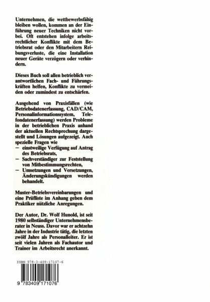 1m heutigen Wettbewerb kommt kein Betrieb mehr umhin, sich mit neuen Techniken im Btirobereich und in der Fertigung zu befassen. Seit mehreren Jahren ist daher im Zuge der EDV-gesteuerten Text-und Informa tionsverarbeitung und Ablaufsteuerung das Sammelwort der Neuen Techniken aus der Diskussion tiber Mitbestimmung des Betriebsrates und Rationalisierungsschutz nicht mehr wegzudenken. Auch die Regelungen des Bundesdatenschutzgesetzes geho ren dazu, wenn man heute tiber das Ftir und Wider der neuen Informationstechnolo gien diskutiert. Wei! die Erorterungen dieses Komplexes allzu leicht emotional und manchmal unsachlich geftihrt werden, in den Betrieben Unsicherheit tiber die Rechtslage besteht und aus dieser Unsicherheit leicht kostspielige Fehler gemacht werden, solI hier ver sucht werden, allen betrieblichen Beteiligten, Ftihrungs- und Fachkraften sowie Betriebsraten, einen Leitfaden an die Hand zu geben, der ihnen einen breiten Uber blick tiber die moglichen Rechtsprobleme gibtund zugleich Losungsweg~.ftir die Betriebspraxis aufzeigt. Neuss, im November 1987 Dr. Wolf Huno/d 5 Inhalt Vorwort ........................................................... 5 Abkiirzungsverzeicbnis. . . . . . . . . . . . . . . . . . . . . . . . . . . . . . . . . 12 . . . . . . . . . . . . . . A. Praxisfiille. . . . . . . . . . . . . . . . . . . . . . . . . . . . . . . . . . . . . . 15 . . . . . . . . . . . . . . . . . I. Betriebsdatenerfassung (Kienzle-Schreiber). . . . . . . . . . . . . . . . . 15 . . . . . II. BildschirmarbeitspUitze. . . . . . . . . . . . . . . . . . . . . . . . . . . 16 . . . . . . . . . . . III. Computergestiitzte Konstruktion und Fertigung (CAD, CAM) . . . . . 17 IV. Finanzberichtssystem (weltweit) ......... . . . . . . . . . . . . . . . . . 18 . . . . . V. Mobile Datenerfassung (MDE) . . . . . . . . . . . . . . . . . . . . . . . 19 . . . . . . . . . VI. Personalinformationssystem (PAlSY) .......................... 20 VII. Point-of-Sale-System (POS-Banking) .. , .............. ,. . .. . . .. . 21 VIII. Techniker-Berichtssystem . . . . . . . . . . . . . . . . . . . . . . . . . . 21 . . . . . . . . . . . IX. Telearbeit...... . . . . . . . . . . . . . . . . . . . . . . . . . . . . . . . 22 . . . . . . . . . . . . . X. Telefondatenerfassung (Telefoncomputer) . . . . . . . . . . . . . . . . . 23 . . . . . . XI. Textverarbeitungsarbeitsplatz . . . . . . . . . . . . . . . . . . . . . . . . 23 . . . . . . . . . . XII. Zugangssicherungssystem..................................... 24 B. Moglicbe Auswirkungen der geplanten Anderungen . . . . . . . . . . . . . . . 26 . . . . I. Obersicht .......... . . . . . . . . . . . . . . . . . . . . . . . . . . . . 26 . . . . . . . . . . . . 1. Anderungen der Arbeitszeit . . . . . . . . . . . . . . . . . . . . . . . 26 . . . . . . . . .