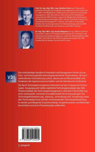 Das mehrbändige Handbuch "Produktion und Management" richtet sich an Fach- und Führungskräfte technologieorientierter Unternehmen, die nach methodischer Unterstützung suchen, ebenso wie an Wissenschaftler und Studenten der Ingenieurwissenschaften und der Betriebswirtschaftslehre.Der Band Technologiemanagement fokussiert auf den Umgang mit Technologien. Ausgangspunkt stellen explizierte Technologiestrategien dar. Dem Prozesscharakter des Technologiemanagements wird durch die Einführung sechs miteinander vernetzter Grundaktivitäten Rechnung getragen: Der Technologiefrüherkennung, -planung, -entwicklung und -verwertung sowie dem Technologieschutz und der unterstützenden Technologiebewertung. Es werden grundlegenden Zusammenhänge, Vorgehensweisen und Methoden beschrieben und durch Praxisbeispiele aufbereitet.