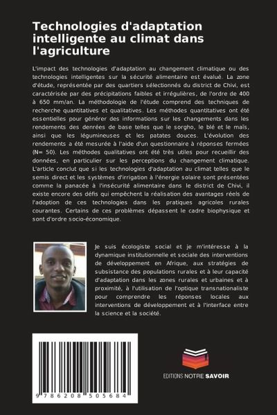 L'impact des technologies d'adaptation au changement climatique ou des technologies intelligentes sur la sécurité alimentaire est évalué. La zone d'étude, représentée par des quartiers sélectionnés du district de Chivi, est caractérisée par des précipitations faibles et irrégulières, de l'ordre de 400 à 650 mm/an. La méthodologie de l'étude comprend des techniques de recherche quantitatives et qualitatives. Les méthodes quantitatives ont été essentielles pour générer des informations sur les changements dans les rendements des denrées de base telles que le sorgho, le blé et le maïs, ainsi que les légumineuses et les patates douces. L'évolution des rendements a été mesurée à l'aide d'un questionnaire à réponses fermées (N= 50). Les méthodes qualitatives ont été très utiles pour recueillir des données, en particulier sur les perceptions du changement climatique. L'article conclut que si les technologies d'adaptation au climat telles que le semis direct et les systèmes d'irrigation à l'énergie solaire sont présentées comme la panacée à l'insécurité alimentaire dans le district de Chivi, il existe encore des défis qui empêchent la réalisation des avantages réels de l'adoption de ces technologies dans les pratiques agricoles rurales courantes. Certains de ces problèmes dépassent le cadre biophysique et sont d'ordre socio-économique.