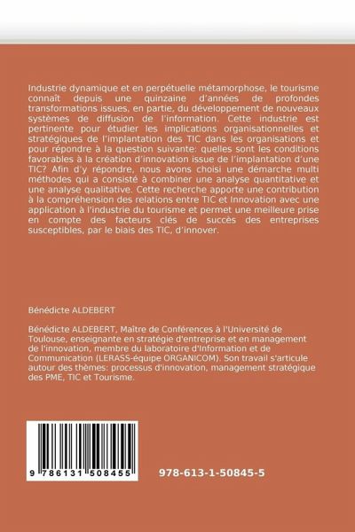 Industrie dynamique et en perpétuelle métamorphose, le tourisme connaît depuis une quinzaine d'années de profondes transformations issues, en partie, du développement de nouveaux systèmes de diffusion de l'information. Cette industrie est pertinente pour étudier les implications organisationnelles et stratégiques de l'implantation des TIC dans les organisations et pour répondre à la question suivante: quelles sont les conditions favorables à la création d'innovation issue de l'implantation d'une TIC? Afin d'y répondre, nous avons choisi une démarche multi méthodes qui a consisté à combiner une analyse quantitative et une analyse qualitative. Cette recherche apporte une contribution à la compréhension des relations entre TIC et Innovation avec une application à l'industrie du tourisme et permet une meilleure prise en compte des facteurs clés de succès des entreprises susceptibles, par le biais des TIC, d'innover.