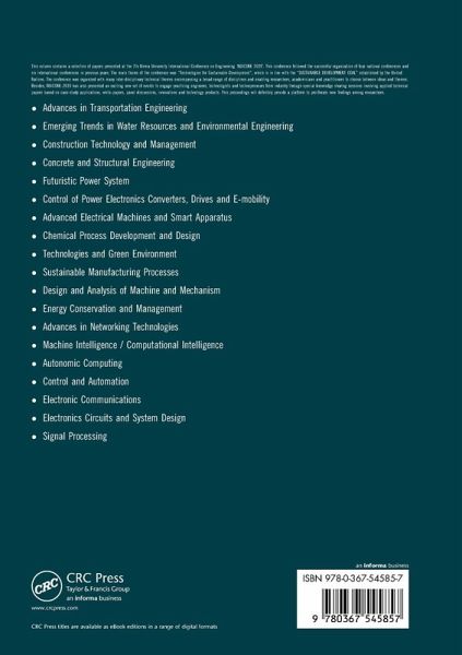 This volume contains a selection of papers presented at the 7th Nirma University International Conference on Engineering 'NUiCONE 2019'. This conference followed the successful organization of four national conferences and six international conferences in previous years. The main theme of the conference was "Technologies for Sustainable Development", which is in line with the "SUSTAINABLE DEVELOPMENT GOAL" established by the United Nations. The conference was organized with many inter-disciplinary technical themes encompassing a broad range of disciplines and enabling researchers, academicians and practitioners to choose between ideas and themes. Besides, NUiCONE-2019 has also presented an exciting new set of events to engage practicing engineers, technologists and technopreneurs from industry through special knowledge sharing sessions involving applied technical papers based on case-study applications, white-papers, panel discussions, innovations and technology products. This proceedings will definitely provide a platform to proliferate new findings among researchers. Advances in Transportation Engineering Emerging Trends in Water Resources and Environmental Engineering Construction Technology and Management Concrete and Structural Engineering Futuristic Power System Control of Power Electronics Converters, Drives and E-mobility Advanced Electrical Machines and Smart Apparatus Chemical Process Development and Design Technologies and Green Environment Sustainable Manufacturing Processes Design and Analysis of Machine and Mechanism Energy Conservation and Management Advances in Networking Technologies Machine Intelligence / Computational Intelligence Autonomic Computing Control and Automation Electronic Communications Electronics Circuits and System Design Signal Processing