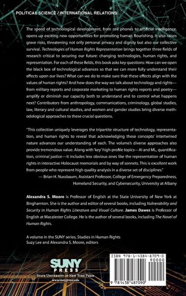 Alexandra S. Moore is Professor of English at the State University of New York at Binghamton. She is the author and editor of several books, including Vulnerability and Security in Human Rights Literature and Visual Culture. James Dawes is Professor of English at Macalester College. He is the author of several books, including The Novel of Human Rights.
