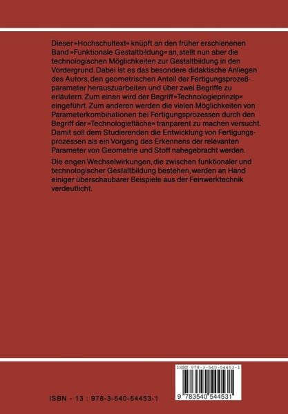 Dieses Buch behandelt die Frage, ob die funktional geforderte Gestalt eines Bauteils mit den denkbaren Technologien hergestellt werden kann und welche Verfahren sich im einzelnen anbieten, wobei auch wirtschaftliche Gesichtspunkte berücksichtigt werden. Unter Gestaltbildung wird hier der Konstruktionsvorgang verstanden, der während des gesamten konstruktiven Entwicklungsprozesses die spätere Gestalt eines Produktes - eine Einheit aus Geometrie- und Stoffparametern - bestimmt. Funktionale und technologische Gestaltbildung stehen in enger Wechselwirkung zueinander. Daraus resultiert, daß sich dieses Buch eng an den früher erschienenen "Hochschultext" über Funktionale Gestaltbildung anschließt. Mit den jetzt neu eingeführten Begriffen Technologieprinzip und Technologiefläche läßt sich die technologische Parametervielfalt in ihrem Einfluß auf das Fertigungsergebnis besonders anschaulich darstellen.
