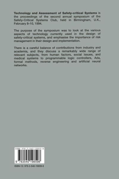 The programme for the Second Safety-critical Systems Symposium was planned to examine the various aspects of technology currently employed in the design of safety-critical systems, as well as to emphasise the importance of safety and risk management in their design and operation. assessment There is an even balance of contributions from academia and industry. Thus, industry is given the opportunity to express its views of the safety-critical domain and at the same time offered a glimpse of the technologies which are currently under development and which, if successful, will be available in the medium-term future. In the field of technology, a subject whose importance is increasingly being recognised is human factors, and there are papers on this from the University of Hertfordshire and Rolls-Royce. Increasingly, PLCs are being employed in safety-critical applications, and this domain is represented by contributions from Nuclear Electric and August Computers. Then there are paperson maintainability, Ada, reverse engineering, social issues, formal methods, and medical systems, all in the context of safety. And, of course, it is not possible to keep the 'new' technologies out of the safety-critical domain: there are papers on neural networks from the University of Exeter and knowledge-based systems from ERA Technology.