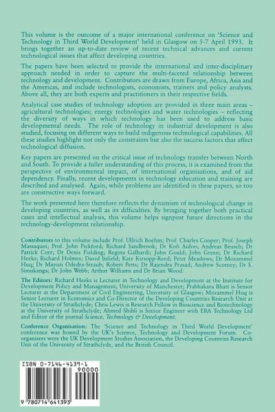 The relationship between technology and development is explored by economists, policy analysts and other experts. The adoption of technology is studied in five main areas agriculture, energy, infrastructure, the introduction of technology and the success and constraints of technological diffusion as a whole. This volume also examines the technology transfer between North and South from a perspective of training, environmental impact and aid dependency. The emphasis is not placed simply on finding problems, but ways forward are examined. By bringing together both practical and intellectual analysis, this collection signposts future directions in the technologydevelopment relationship.