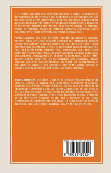 Technology and economic progress - the supply and demand for scientists and engineers, A.Silberston; science and industry in the United Kingdom - 1952 and 1987, B.Williams; economic organization and technological change, P.Dasgupta; evolution and economic change, S.Metcalfe; market forces and the evolution of supply in the British telecommunications and electricty supply industries, N.von Tunzelman; the technological activities of the UK - a fresh look, P.Patel and K.Pavitt; the economic importance of patents, A.Silberston; technological change and the work/leisure balance - a new system of socio-economic accounts, J.Gershuny; strategy and finance in small high-technology companies, J.G.Smith and V.Fleck.