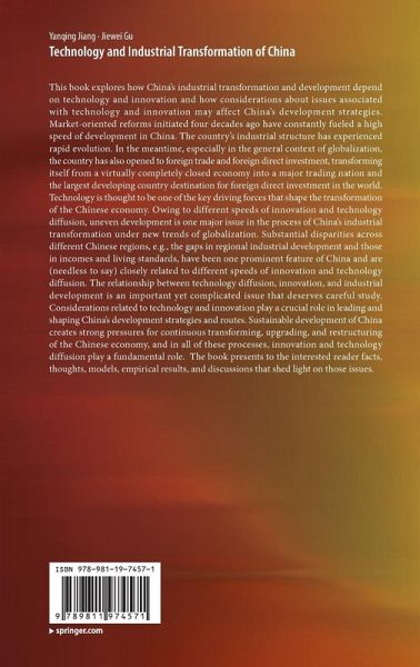 This book explores how China's industrial transformation and development depend on technology and innovation and how considerations about issues associated with technology and innovation may affect China's development strategies. Market-oriented reforms initiated four decades ago have constantly fueled a high speed of development in China. The country's industrial structure has experienced rapid evolution. In the meantime, especially in the general context of globalization, the country has also opened to foreign trade and foreign direct investment, transforming itself from a virtually completely closed economy into a major trading nation and the largest developing country destination for foreign direct investment in the world. Technology is thought to be one of the key driving forces that shape the transformation of the Chinese economy. Owing to different speeds of innovation and technology diffusion, uneven development is one major issue in the process of China's industrial transformation under new trends of globalization. Substantial disparities across different Chinese regions, e.g., the gaps in regional industrial development and those in incomes and living standards, have been one prominent feature of China and are (needless to say) closely related to different speeds of innovation and technology diffusion. The relationship between technology diffusion, innovation, and industrial development is an important yet complicated issue that deserves careful study. Considerations related to technology and innovation play a crucial role in leading and shaping China's development strategies and routes. Sustainable development of China creates strong pressures for continuous transforming, upgrading, and restructuring of the Chinese economy, and in all of these processes, innovation and technology diffusion play a fundamental role. The book presents to the interested reader facts, thoughts, models, empirical results, and discussions that shed light on those issues.