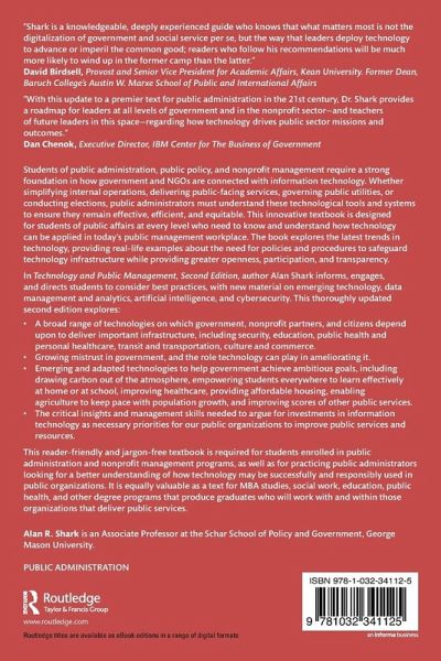 "With this update to a premier text for public administration in the 21st century, Dr. Shark provides a roadmap for leaders at all levels of government and in the nonprofit sector-and teachers of future leaders in this space-regarding how technology drives public sector missions and outcomes. Perhaps more importantly, Dr. Shark highlights how public administrators can leverage technology in their work, enabling greater effectiveness for the people served by government programs and civil society advocacy. The text tracks the evolution of key topics in managing technology that range from mobile devices and broadband access to cybersecurity and privacy. Readers will learn both foundational content and practical applications that they can adapt in their own work. Dr. Shark's text leaves the field of public administration in a better place."