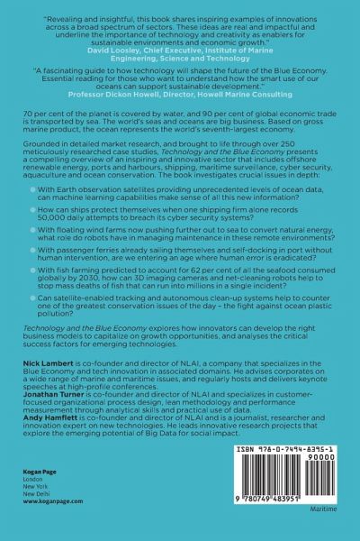70 per cent of the planet is covered by water, and 90 per cent of global economic trade is transported by sea. The world's seas and oceans are big business. Based on gross marine product, the ocean can be considered the world's seventh-largest economy, with the total global value of the Blue Economy predicted to rise to $3 trillion by 2030. Grounded in detailed market research, and brought to life through over 250 meticulously researched case studies, Technology and the Blue Economy presents a compelling overview of an inspiring and innovative sector that includes offshore renewable energy, ports and harbours, shipping, maritime surveillance, cyber security, aquaculture and ocean conservation. It tackles questions like these: · With Earth observation satellites providing unprecedented levels of data about the ocean, can machine learning capabilities develop at pace to make sense of all this new information? · How can ships protect themselves when one shipping firm alone records 50,000 daily attempts to breach its cyber security systems? · With floating wind farms now pushing further out to sea to convert natural energy, what role do robots have in managing essential maintenance in these more remote environments? · When passenger ferries are already sailing themselves and self-docking in port without human intervention, are we entering an age where human error is eradicated? · With fish farming predicted to account for 62 per cent of all the seafood consumed globally by 2030, how can 3D imaging cameras and net-cleaning robots help to stop mass deaths of fish that can run into millions in a single incident? · In the age of smartphone ubiquity, how important a role might social media and citizen science play in ocean conservation? · With luxury cruise ships now marketing themselves as 'smart, connected cities', crunching passenger data in real-time, do they now provide the gold standard of customer experience within the tourist industry? · Is optical scanning technology the solution to countering slavery at sea, a real concern in the south-east Asian fishing industry? · Can satellite-enabled tracking and autonomous clean-up systems help to counter one of the greatest conservation issues of the day - the fight against ocean plastic pollution? Technology and the Blue Economy explores how innovators can develop the right business models to capitalize on growth opportunities, and analyses the critical success factors for emerging technologies.