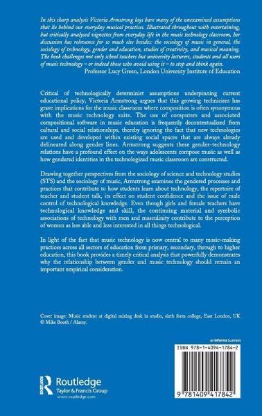 'In this sharp analysis Victoria Armstrong lays bare many of the unexamined assumptions that lie behind our everyday musical practices. Illustrated throughout with entertaining, but critically analysed vignettes from everyday life in the music technology classroom, her discussion has relevance for so much else besides: the sociology of music in general, the sociology of technology, gender and education, studies of creativity, and musical meaning. The book challenges not only school teachers but university lecturers, students and all users of music technology - or indeed those who avoid using it - to stop and think again.' Lucy Green, London University Institute of Education '...this a valuable resource for students of music education and a must for gender studies... The bibliography and index are thorough... Recommended.' Choice '... the remedial proposals [Armstrong] puts forward in the final chapter as ways of helping to redress the gender imbalance are persuasive and thought-provoking.' British Journal of Educational Technology 'Victoria Armstrong's book marks an important step in increasing the awareness of how music technology and the cultures surrounding it influence music making practices for students and teachers... Undoubtedly this worthwhile book offers important insights into music technology's place in schools, making a clear case for gender equity in music education being more than just a matter of equal access to equipment. It challenges us to reconsider the role of technology in contemporary education through a greater awareness of the variety of practices, cultures and social meanings that emerge through and around its use. Recommended reading for anyone involved in the teaching of music.' Music Education Research Journal '... fluent, articulate and critical throughout. It engages with a broad range of ideas and there are constant provocations that got me thinking. It is hard to argue with her central thesis and her implications for