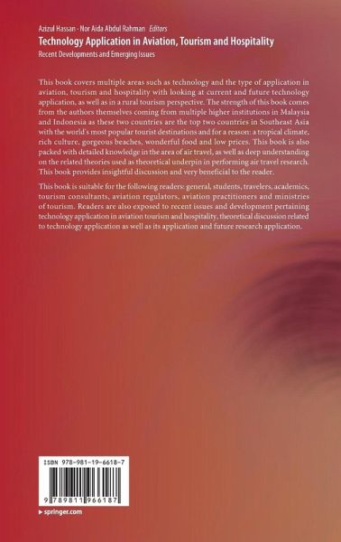 This book covers multiple areas such as technology and the type of application in aviation, tourism and hospitality with looking at current and future technology application, as well as in a rural tourism perspective. The strength of this book comes from the authors themselves coming from multiple higher institutions in Malaysia and Indonesia as these two countries are the top two countries in Southeast Asia with the world's most popular tourist destinations and for a reason: a tropical climate, rich culture, gorgeous beaches, wonderful food and low prices. This book is also packed with detailed knowledge in the area of air travel, as well as deep understanding on the related theories used as theoretical underpin in performing air travel research. This book provides insightful discussion and very beneficial to the reader.