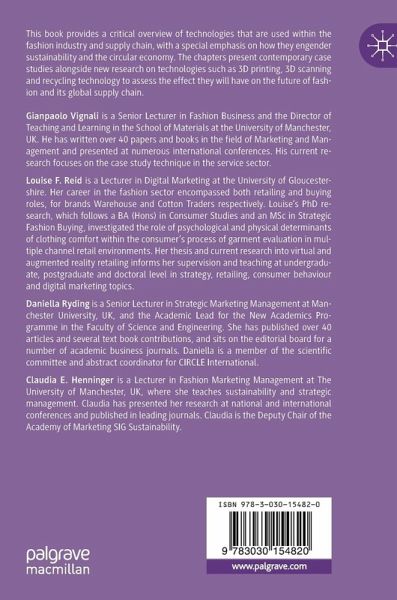 This book provides a critical overview of technologies that are used within the fashion industry and supply chain, with a special emphasis on how they engender sustainability and the circular economy. The chapters present contemporary case studies alongside new research on technologies such as 3D printing, 3D scanning and recycling technology to assess the effect they will have on the future of fashion and its global supply chain.