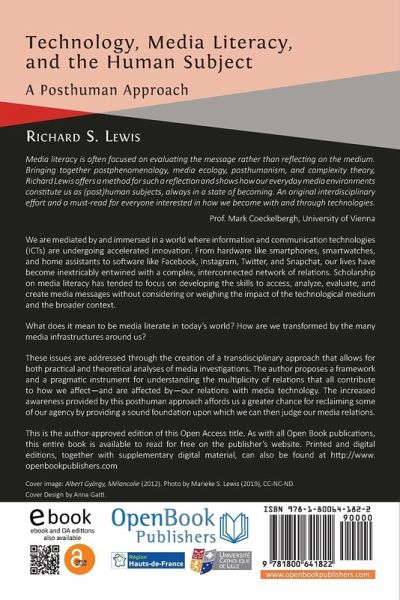 What does it mean to be media literate in today's world? How are we transformed by the many media infrastructures around us? We are immersed in a world mediated by information and communication technologies (ICTs). From hardware like smartphones, smartwatches, and home assistants to software like Facebook, Instagram, Twitter, and Snapchat, our lives have become a complex, interconnected network of relations. Scholarship on media literacy has tended to focus on developing the skills to access, analyze, evaluate, and create media messages without considering or weighing the impact of the technological medium-how it enables and constrains both messages and media users. Additionally, there is often little attention paid to the broader context of interrelations which affect our engagement with media technologies. This book addresses these issues by providing a transdisciplinary method that allows for both practical and theoretical analyses of media investigations. Informed by postphenomenology, media ecology, philosophical posthumanism, and complexity theory the author proposes both a framework and a pragmatic instrument for understanding the multiplicity of relations that all contribute to how we affect-and are affected by-our relations with media technology. The author argues persuasively that the increased awareness provided by this posthuman approach affords us a greater chance for reclaiming some of our agency and provides a sound foundation upon which we can then judge our media relations. This book will be an indispensable tool for educators in media literacy and media studies, as well as academics in philosophy of technology, media and communication studies, and the post-humanities.