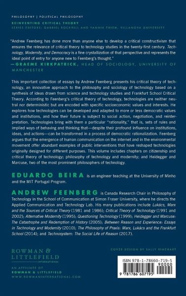 Andrew Feenberg is Canada Research Chair in Philosophy of Technology in the School of Communication, Simon Fraser University, where he directs the Applied Communication and Technology Lab. His many publications include Lukács, Marx and the Sources of Critical Theory (1981 and 1986), Critical Theory of Technology (1991 and 2002), Alternative Modernity (1995), Questioning Technology (1999), Heidegger and Marcuse: The Catastrophe and Redemption of History (2005), Between Reason and Experience: Essays in Technology and Modernity (2010), The Philosophy of Praxis: Marx, Lukács and the Frankfurt School (2014) and Technosystem: The Social Life of Reason (2017). Eduardo Beira is an engineer teaching at the University of Minho and the MIT Portugal Program.