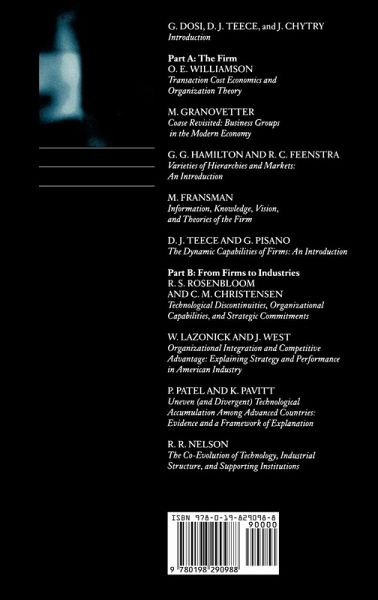 This book brings together the work of leading international thinkers working in the overlapping areas of economics, organization studies, business history, corporate strategy, and innovation. There is a growing awareness that the perspectives of a single discipline are unable to capture and explain the complexities and dynamics of firm behaviour, organizational structure, and corporate strategy. All the chapters in this book are drawn from the pioneering journal Industrial and Corporate Change opening up the inter-disciplinary coverage of the journal to a wider readership. Here readers will find extensive and original contributions from economists Oliver Williamson, Richard Nelson, and Martin Fransman; sociology and organization theorists Mark Granovetter and Gary Hamilton; business historians William Lazonick and Jonathan West; innovation scholars Parimal Patel, Keith Pavitt, and Giovanni Dosi; and business strategists David Teece and Gary Pisano. This book will be vital reading for all those who want to get to grips with the best of current international thinking on the dynamic interplay of technology, organization, and competition.