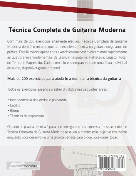 Com mais de 200 exerci¿cios altamente efetivos, Te¿cnica Completa de Guitarra Moderna deströi o mito de que uma excelente te¿cnica na guitarra exige anos de prätica. Este livro foca apenas nos exerci¿cios que desenvolvem mais rapidamente as quatro äreas fundamentais da te¿cnica na guitarra: Palhetada, Legato, Tocar no Tempo e Expressäo. Cada exerci¿cio e¿ acompanhado de uma faixa individual de äudio, disponi¿vel gratuitamente! Mais de 200 exerci¿cios para ajudä-lo a dominar a te¿cnica da guitarra Todos os exerci¿cios essenciais estäo divididos nas seguintes äreas: ¿ Independe¿ncia dos dedos e palhetada ¿ Legato ¿ Ritmo ¿ Te¿cnicas de expressäo O ponto de praticar te¿cnica e¿ para que consigamos nos expressar musicalmente - e Te¿cnica Completa de Guitarra Moderna te ajuda a manter esse objetivo em mente enquanto voce¿ desenvolve uma te¿cnica perfeita para o que voce¿ quiser tocar.