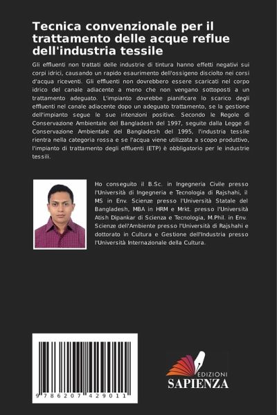 Gli effluenti non trattati delle industrie di tintura hanno effetti negativi sui corpi idrici, causando un rapido esaurimento dell'ossigeno disciolto nei corsi d'acqua riceventi. Gli effluenti non dovrebbero essere scaricati nel corpo idrico del canale adiacente a meno che non vengano sottoposti a un trattamento adeguato. L'impianto dovrebbe pianificare lo scarico degli effluenti nel canale adiacente dopo un adeguato trattamento, se la gestione dell'impianto segue le sue intenzioni positive. Secondo le Regole di Conservazione Ambientale del Bangladesh del 1997, seguite dalla Legge di Conservazione Ambientale del Bangladesh del 1995, l'industria tessile rientra nella categoria rossa e se l'acqua viene utilizzata a scopo produttivo, l'impianto di trattamento degli effluenti (ETP) è obbligatorio per le industrie tessili.