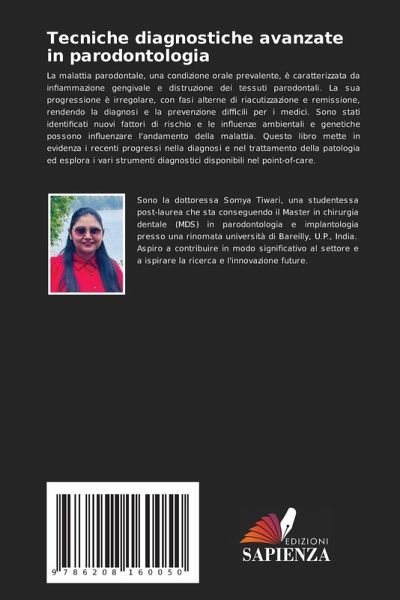 La malattia parodontale, una condizione orale prevalente, è caratterizzata da infiammazione gengivale e distruzione dei tessuti parodontali. La sua progressione è irregolare, con fasi alterne di riacutizzazione e remissione, rendendo la diagnosi e la prevenzione difficili per i medici. Sono stati identificati nuovi fattori di rischio e le influenze ambientali e genetiche possono influenzare l'andamento della malattia. Questo libro mette in evidenza i recenti progressi nella diagnosi e nel trattamento della patologia ed esplora i vari strumenti diagnostici disponibili nel point-of-care.