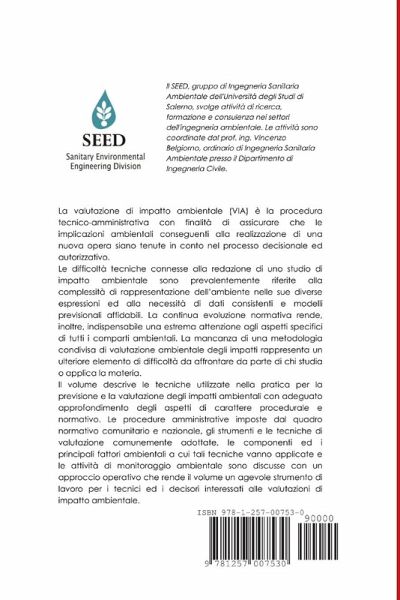 La valutazione di impatto ambientale (VIA) è la procedura tecnico-amministrativa con finalità di assicurare che le implicazioni ambientali conseguenti alla realizzazione di una nuova opera siano tenute in conto nel processo decisionale ed autorizzativo. Il volume descrive le tecniche utilizzate nella pratica per la previsione e la valutazione degli impatti ambientali con adeguato approfondimento degli aspetti di carattere procedurale e normativo. Le procedure amministrative imposte dal quadro normativo comunitario e nazionale, gli strumenti e le tecniche di valutazione comunemente adottate, le componenti ed i principali fattori ambientali a cui tali tecniche vanno applicate e le attività di monitoraggio ambientale sono discusse con un approccio operativo che rende il volume un agevole strumento di lavoro per i tecnici ed i decisori interessati alle valutazioni di impatto ambientale.