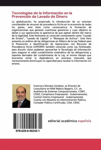 La globalización, ha propiciado la introducción de un volumen considerable de recursos de procedencia ilícita en la economía de todos los países, esto tiene como consecuencia la formación de organizaciones que generan cuantiosas ganancias y cuyo objetivo es darles a sus operaciones la apariencia de que operan dentro del marco de la legalidad. Este fenómeno es conocido comúnmente como "Lavado de Dinero", "Lavado de Capital" o "Blanqueo de Activos". Este libro presenta un análisis de las obligaciones en México de la Ley Federal para la Prevención e Identificación de Operaciones con Recursos de Procedencia Ilícita (LFPIORPI) también conocida como Ley Antilavado, para discutir cómo podemos aprovechar la Tecnología de Información para asegurar el cabal cumplimiento sistemático de las obligaciones y reportes derivados del cumplimiento de la Ley, al mismo tiempo que buscamos evitar la dependencia en procesos manuales que necesariamente disminuyen la capacidad para recabar la información sin errores.