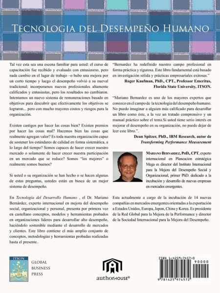 Tecnologia del Desempeño Humano es el primer tratado exhaustivo en castellano sobre los conceptos, métodos y herramientas de la disciplina conocida como Human Performance Technology (HPT), elaborado por una autoridad internacional en la materia. Este libro es a la vez una guia paso a paso para diagnosticar, analizar, diseñar, implementar y evaluar sistemas de alto desempeño en la organización. Todos los instrumentos y tecnologías presentados están validados por rigurosa investigación y aplicaciones organizacionales exitosas en empresas líderes de Estados Unidos, Europa, America Latina y Asia, así como por su aplicación en el Instituto Internacional para la Mejora del Desempeño, programa doctoral del Instituto Tecnológico de Sonora. Para la realización de este libro, el Dr. Bernardez realizó una exhaustiva validación de la literatura en la materia publicada en inglés y castellano entre 1914 y 2005. Los instrumentos prácticos fueron validados mediante su aplicación a 14 organizaciones de banca, agroindustria, construcción, desarrollo de software, educación, energía, logística, comercio local e internacional, gobierno y ONGs.