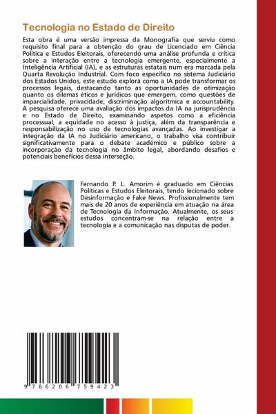 Esta obra é uma versão impressa da Monografia que serviu como requisito final para a obtenção do grau de Licenciado em Ciência Política e Estudos Eleitorais, oferecendo uma análise profunda e crítica sobre a interação entre a tecnologia emergente, especialmente a Inteligência Artificial (IA), e as estruturas estatais num era marcada pela Quarta Revolução Industrial. Com foco específico no sistema Judiciário dos Estados Unidos, este estudo explora como a IA pode transformar os processos legais, destacando tanto as oportunidades de otimização quanto os dilemas éticos e jurídicos que emergem, como questões de imparcialidade, privacidade, discriminação algorítmica e accountability. A pesquisa oferece uma avaliação dos impactos da IA na jurisprudência e no Estado de Direito, examinando aspetos como a eficiência processual, a equidade no acesso à justiça, além da transparência e responsabilização no uso de tecnologias avançadas. Ao investigar a integração da IA no Judiciário americano, o trabalho visa contribuir significativamente para o debate académico e público sobre a incorporação da tecnologia no âmbito legal, abordando desafios e potenciais benefícios dessa interseção.