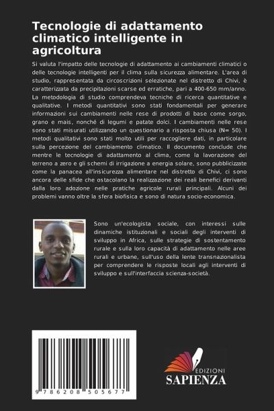 Si valuta l'impatto delle tecnologie di adattamento ai cambiamenti climatici o delle tecnologie intelligenti per il clima sulla sicurezza alimentare. L'area di studio, rappresentata da circoscrizioni selezionate nel distretto di Chivi, è caratterizzata da precipitazioni scarse ed erratiche, pari a 400-650 mm/anno. La metodologia di studio comprendeva tecniche di ricerca quantitative e qualitative. I metodi quantitativi sono stati fondamentali per generare informazioni sui cambiamenti nelle rese di prodotti di base come sorgo, grano e mais, nonché di legumi e patate dolci. I cambiamenti nelle rese sono stati misurati utilizzando un questionario a risposta chiusa (N= 50). I metodi qualitativi sono stati molto utili per raccogliere dati, in particolare sulla percezione del cambiamento climatico. Il documento conclude che mentre le tecnologie di adattamento al clima, come la lavorazione del terreno a zero e gli schemi di irrigazione a energia solare, sono pubblicizzate come la panacea all'insicurezza alimentare nel distretto di Chivi, ci sono ancora delle sfide che ostacolano la realizzazione dei reali benefici derivanti dalla loro adozione nelle pratiche agricole rurali principali. Alcuni dei problemi vanno oltre la sfera biofisica e sono di natura socio-economica.