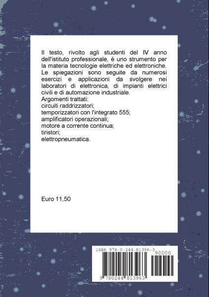Il testo è rivolto agli allievi della classe quarta dell'Istituto professionale e rappresenta uno strumento per la materia tecnologie elettriche ed elettroniche. L'esposizione dei contenuti è accompagnata da numerose proposte per le attività di laboratorio ( montaggio di prototipi su breadboard, uso degli strumenti di misura, realizzazione di impianti elettrici civili e industriali anche di tipo elettropneumatico) oltre che da esercizi (domande a risposta breve e strutturata).