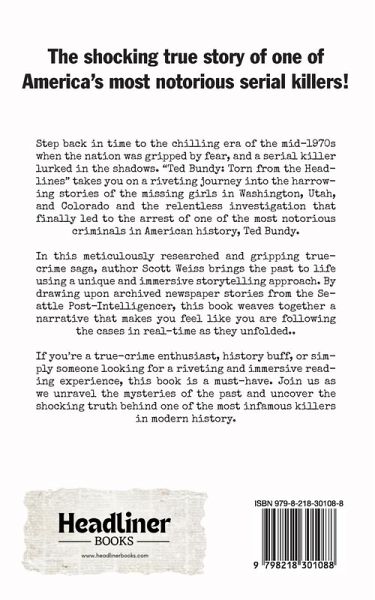 Step back in time to the chilling era of the mid-1970s when the nation was gripped by fear, and a serial killer lurked in the shadows. "Ted Bundy: Torn from the Headlines" takes you on a riveting journey into the harrowing stories of the missing girls in Washington, Utah, and Colorado and the relentless investigation that finally led to the arrest of one of the most notorious criminals in American history, Ted Bundy. In this meticulously researched and gripping true-crime saga, author Scott Weiss brings the past to life using a unique and immersive storytelling approach. By drawing upon archived newspaper stories from the Seattle Post-Intelligencer, this book weaves together a narrative that makes you feel like you are following the cases in real-time as they unfolded. A Gripping True-Crime Saga: "Ted Bundy: Torn from the Headlines" dives deep into the shocking disappearances of young women that sent shockwaves through communities in Washington, Utah, and Colorado. With meticulous attention to detail, the author paints a vivid and haunting picture of these tragic events. Ted Bundy's Dark Descent: Explore the chilling backstory of Ted Bundy, a charismatic and seemingly ordinary man who harbored unspeakable desires. Learn about his early life, the development of his dark tendencies, and the mask he wore to hide his true nature. The Emergence of a Serial Killer: Follow the sinister evolution of Bundy's killing spree as he refines his tactics and becomes increasingly elusive. The book sheds light on the urgency of law enforcement agencies to track down this cunning and dangerous predator. Real-Time Investigation: "Ted Bundy: Torn from the Headlines" brilliantly employs archived newspaper stories from the Seattle Post-Intelligencer to create an immersive experience. Readers will feel like they are part of the investigative process, from the first leads to the breakthroughs that eventually led to Bundy's arrest. Capturing Ted Bundy: Experience the heart-pounding moments leading up to Ted Bundy's capture. The book vividly describes the close calls and near misses, as well as the pivotal breakthroughs that finally brought him to justice. Inside the Courtroom: Gain exclusive access to the sensational trial of Ted Bundy. Through gripping narrative and compelling images, you'll witness the drama, legal strategies, and emotional impact on the victims' families as justice is pursued. Striking Images: includes a compelling collection of images, including archival photographs and newspaper clippings that transport you back in time and offer a visual dimension to this dark chapter in American history. Prepare to be captivated by a meticulously researched narrative that reads like a gripping thriller. "Ted Bundy: Torn from the Headlines" is not only a haunting account of the missing girls and the man who terrorized them but also a cautionary tale about the depths of human depravity and the unwavering determination of those who seek justice. If you're a true-crime enthusiast, history buff, or simply someone looking for a riveting and immersive reading experience, this book is a must-have. Join us as we unravel the mysteries of the past and uncover the shocking truth behind one of the most infamous killers in modern history.