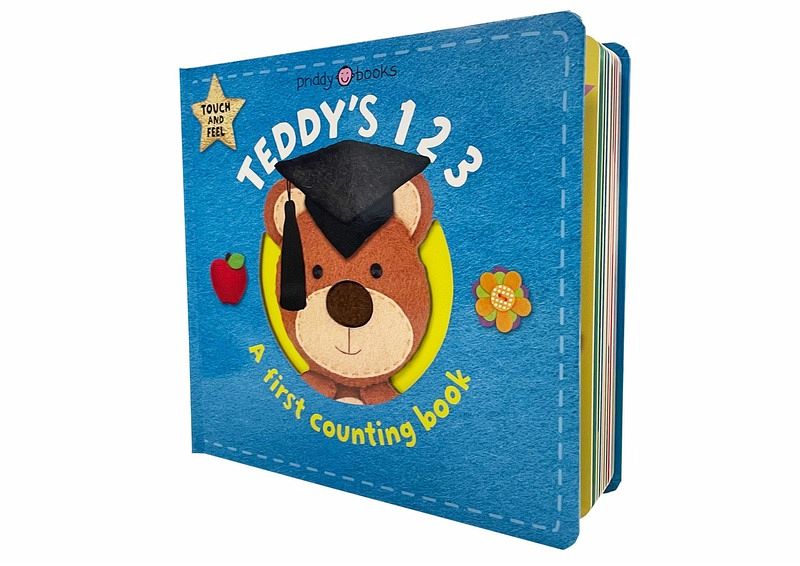 Teddy's 123, in the Learn with Bear series by Priddy Books, features charming felt characters and engaging things to touch and feel on every spread.