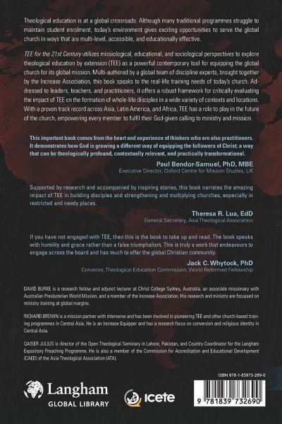 Theological education is at a global crossroads. Although many traditional programmes struggle to maintain student enrolment, today's environment gives exciting opportunities to serve the global church in ways that are multi-level, accessible, and educationally effective. TEE for the 21st Century utilizes missiological, educational, and sociological perspectives to explore theological education by extension (TEE) as a powerful contemporary tool for equipping the global church for its global mission. Multi-authored by a global team of discipline experts, brought together by the Increase Association, this book speaks to the real-life training needs of today's church. Addressed to leaders, teachers, and practitioners, it offers a robust framework for critically evaluating the impact of TEE on the formation of whole-life disciples in a wide variety of contexts and locations. With a proven track record across Asia, Latin America, and Africa, TEE has a role to play in the future of the church, empowering every member to fulfil their God-given calling to ministry and mission.