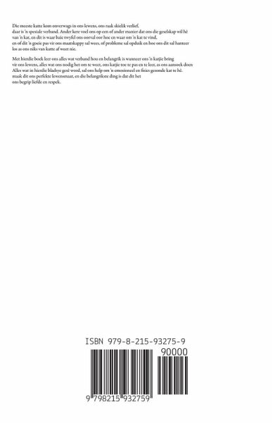 Die meeste katte kom onverwags in ons lewens, ons raak skielik verlief, daar is 'n spesiale verband. Ander kere voel ons op een of ander manier dat ons die geselskap wil hê van 'n kat, en dit is waar baie twyfel ons oorval oor hoe en waar om 'n kat te vind, en of dit 'n goeie pas vir ons maatskappy sal wees, of probleme sal opduik en hoe ons dit sal hanteer los as ons niks van katte af weet nie. Met hierdie boek leer ons alles wat verband hou en belangrik is wanneer ons 'n katjie bring vir ons lewens, alles wat ons nodig het om te weet, ons katjie toe te pas en te leer, as ons aansoek doen Alles wat in hierdie bladsye gesê word, sal ons help om 'n emosioneel en fisies gesonde kat te hê. maak dit ons perfekte lewensmaat, en die belangrikste ding is dat dit het ons begrip liefde en respek.