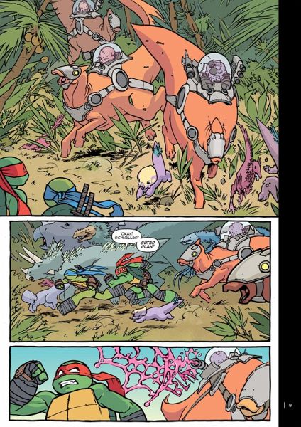 Erlebe sämtliche Abenteuer der heldenhaften Panzerkröten in der empfohlenen Lesereihenfolge, inklusive Oneshots, Crossover-Episoden und Special Events! Durch die Hilfe eines freundlichen Dimensionsreisenden gelingt es den Turtles, einer misslichen Lage zu entkommen und sie reisen rückwärts durch die Zeit. Derweil treffen Shredder und Krang endlich erneut aufeinander... aber werden sie es auch schaffen, ihre Kräfte zu vereinen, um ihre Ziele zu erreichen? Old Hob bleibt ebenfalls nicht untätig und perfektioniert die Kunst, Mutanten zu erschaffen. Zu guter Letzt landen die Turtles in einem seltsam andersartigen New York City. Einem NYC mit Geistern und Geisterjägern!
