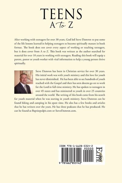 After working with teenagers for over 30 years, God led Steve Damron to put some of the life lessons learned in helping teenagers to become spiritually mature in book format. The book does not cover every aspect of working or teaching teenagers, but it does cover from A to Z. This book was written as the author searched for material for over 10 years in working with teenagers. Reading this book will equip a parent, pastor or youth worker with vital information to help a young person thrive spiritually. Steve Damron has been in Christian service for over 30 years. His initial work was with youth ministry and this love for youth has never diminished. He has been able to see hundreds of youth reached with the Gospel and then has seen dozens go on to work for the Lord in full-time ministry. He has spoken to teenagers in over 45 states and has ministered to youth in over 25 countries around the world. The writing of this book came from his search for youth material when he was starting in youth ministry. Steve Damron can be found hiking and camping in his spare time. He also has a few books and articles that he has written over the years. He has three podcasts that he has produced. He can be found as Baptistpulpit.com or SteveDamron.com.