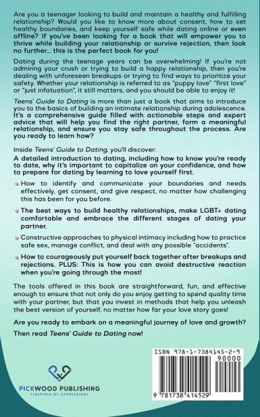 Are you a teenager looking to build and maintain a healthy and fulfilling relationship? Would you like to know more about consent, how to set healthy boundaries, and keep yourself safe while dating online or even offline? If you've been looking for a book that will empower you to thrive while building your relationship or survive rejection, then look no further... this is the perfect book for you! Dating during the teenage years can be overwhelming! If you're not admiring your crush or trying to build a happy relationship, then you're dealing with unforeseen breakups or trying to find ways to prioritize your safety. Whether your relationship is referred to as "puppy love" "first love" or "just infatuation", it still matters, and you should be able to enjoy it! Teens' Guide to Dating is more than just a book that aims to introduce you to the basics of building an intimate relationship during adolescence. It's a comprehensive guide filled with actionable steps and expert advice that will help you find the right partner, form a meaningful relationship, and ensure you stay safe throughout the process. Are you ready to learn how?Inside Teens' Guide to Dating, you'll discover: ¿ A detailed introduction to dating, including how to know you're ready to date, why it's important to capitalize on your confidence, and how to prepare for dating by learning to love yourself first. ¿ How to identify and communicate your boundaries and needs effectively, get consent, and give respect, no matter how challenging this has been for you before. ¿ The best ways to build healthy relationships, make LGBT+ dating comfortable and embrace the different stages of dating your partner. ¿ Constructive approaches to physical intimacy including how to practice safe sex, manage conflict, and deal with any possible "accidents". ¿ How to courageously put yourself back together after breakups and rejections. PLUS: This is how you can avoid destructive behavior when you're going through the most! The tools offered in this book are straightforward, fun, and effective enough to ensure that not only do you enjoy getting to spend quality time with your partner, but that you invest in methods that help you unleash the best version of yourself, no matter how far your love story goes! Are you ready to embark on a meaningful journey of love and growth? Then read Teens' Guide to Dating now!