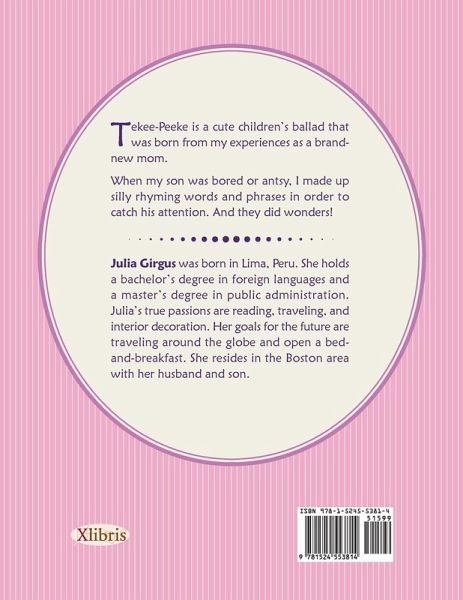 Tekee-Peeke is a cute children's ballad that was born from my experiences as a brand-new mom. When my son was bored or antsy, I made up silly rhyming words and phrases in order to catch his attention. And they did wonders!