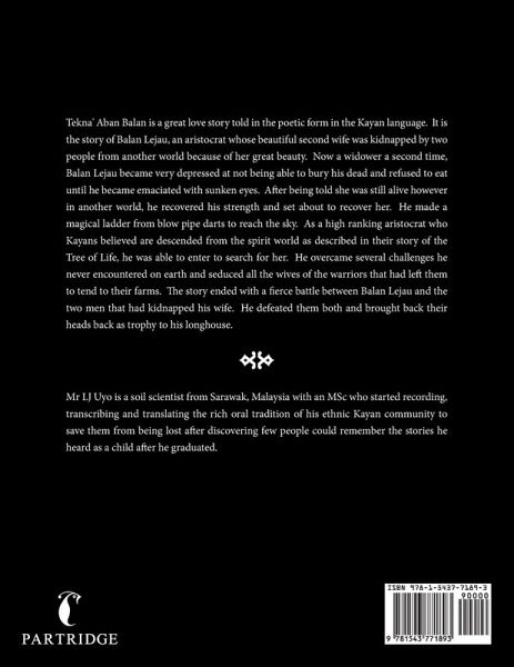 Tekna' Aban Balan is a great love story told in the poetic form in the Kayan language. It is the story of Balan Lejau, an aristocrat whose beautiful second wife was kidnapped by two people from another world because of her great beauty. Now a widower a second time, Balan Lejau became very depressed at not being able to bury his dead and refused to eat until he became emaciated with sunken eyes. After being told she was still alive however in another world, he recovered his strength and set about to recover her. He made a magical ladder from blow pipe darts to reach the sky. As a high ranking aristocrat who Kayans believed are descended from the spirit world as described in their story of the Tree of Life, he was able to enter to search for her. He overcame several challenges he never encountered on earth and seduced all the wives of the warriors that had left them to tend to their farms. The story ended with a fierce battle between Balan Lejau and the two men that had kidnapped his wife. He defeated them both and brought back their heads back as trophy to his longhouse.